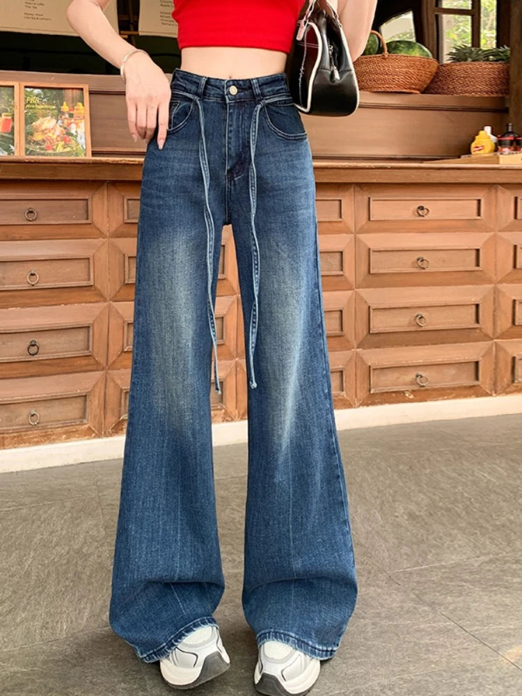 2026 Spring Summer New Women's High Quality Stretchy Jeans High Waist Drawstring Loose Floor-Length Flared Pants