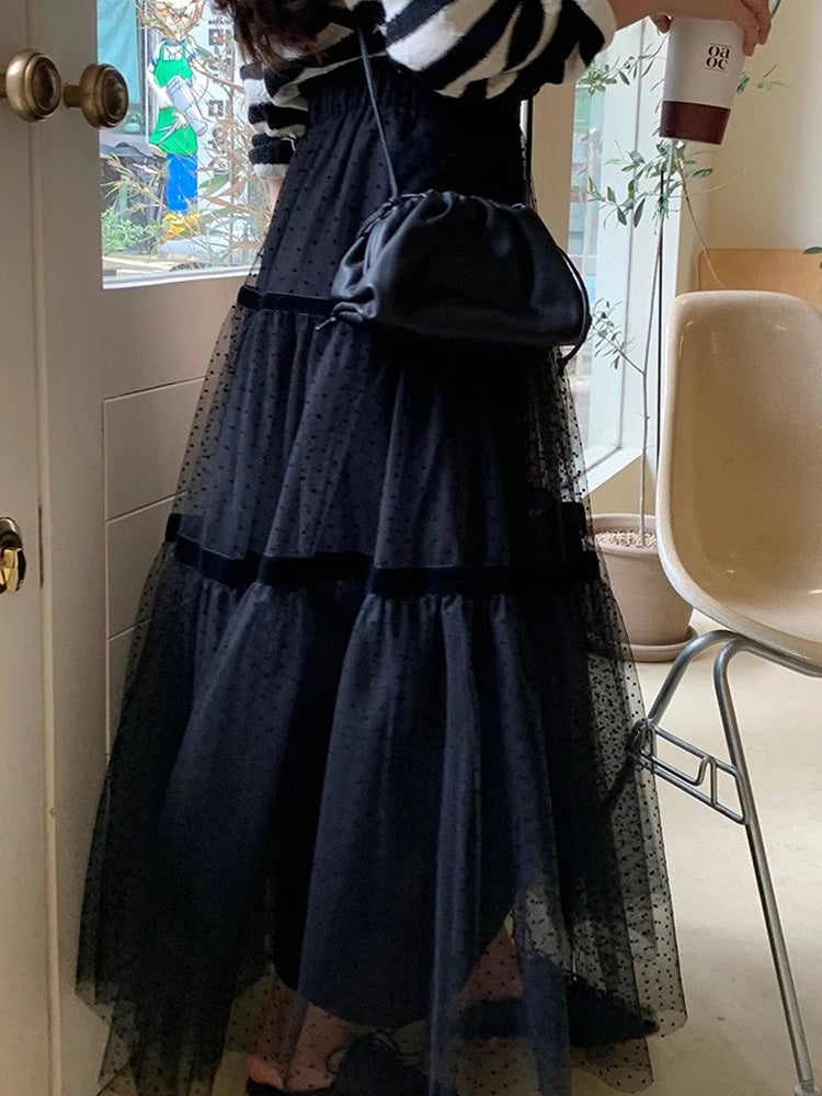 Faionable High Waist Knee-Length Polka Dot f Skirt Women's Korean Sle Spring Autumn Loose A-Line Skirt Long Skirt