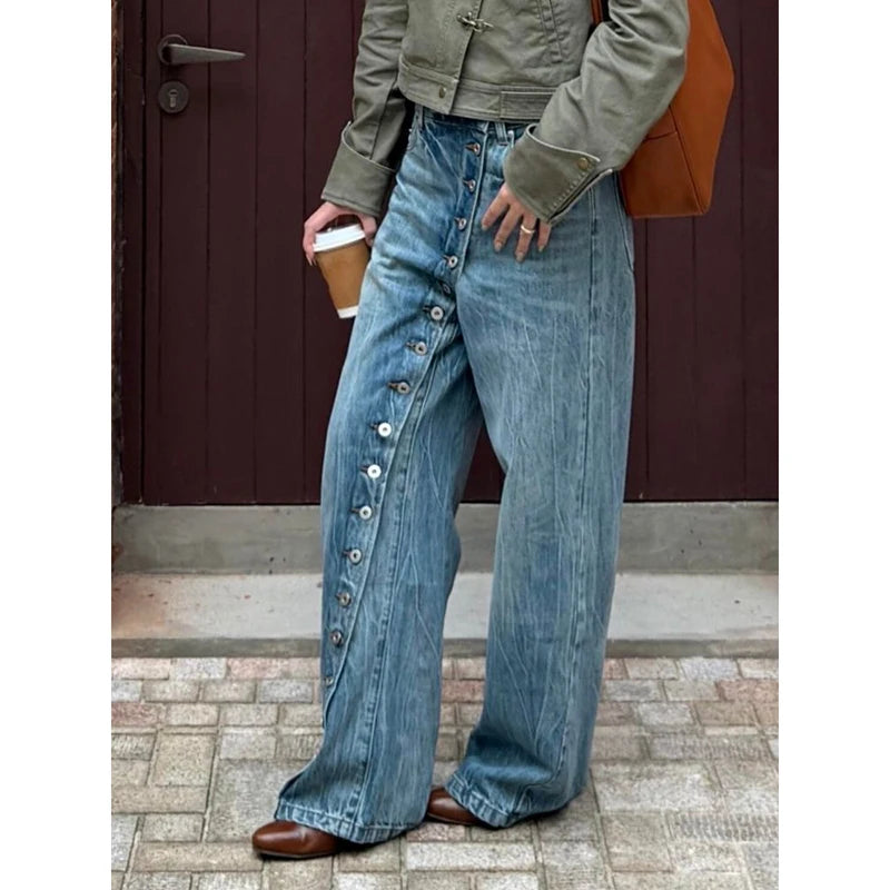 YIBASHU Women Blue Y2k Baggy Wide Jeans Grunge Jean Pants Vintage Harajuku Oversize Boyfriend Denim Trousers Alternative Clothes