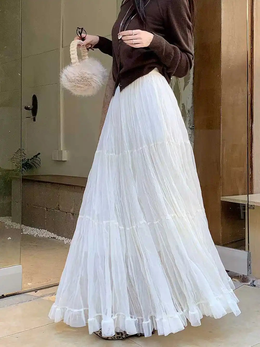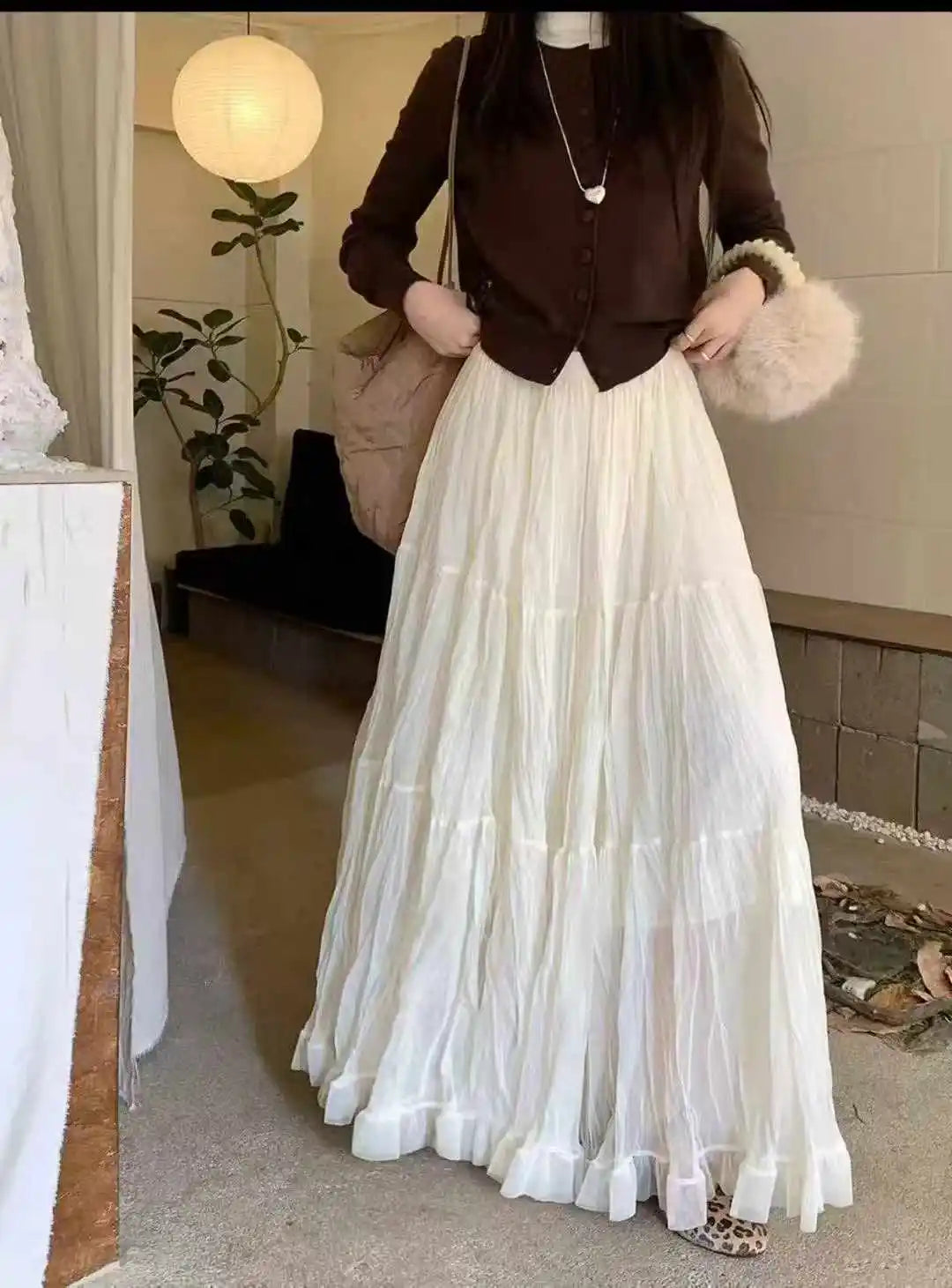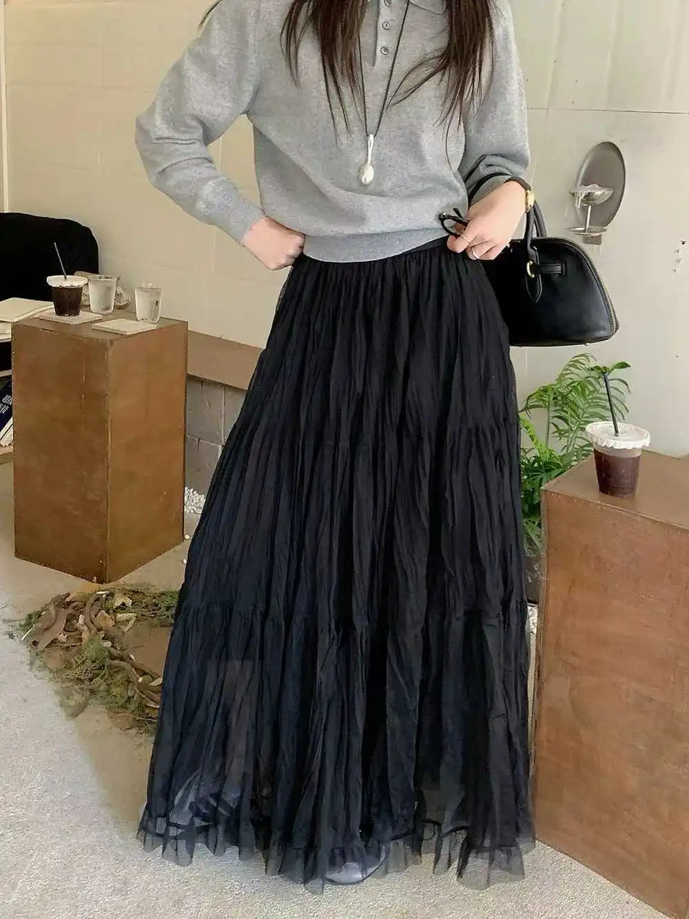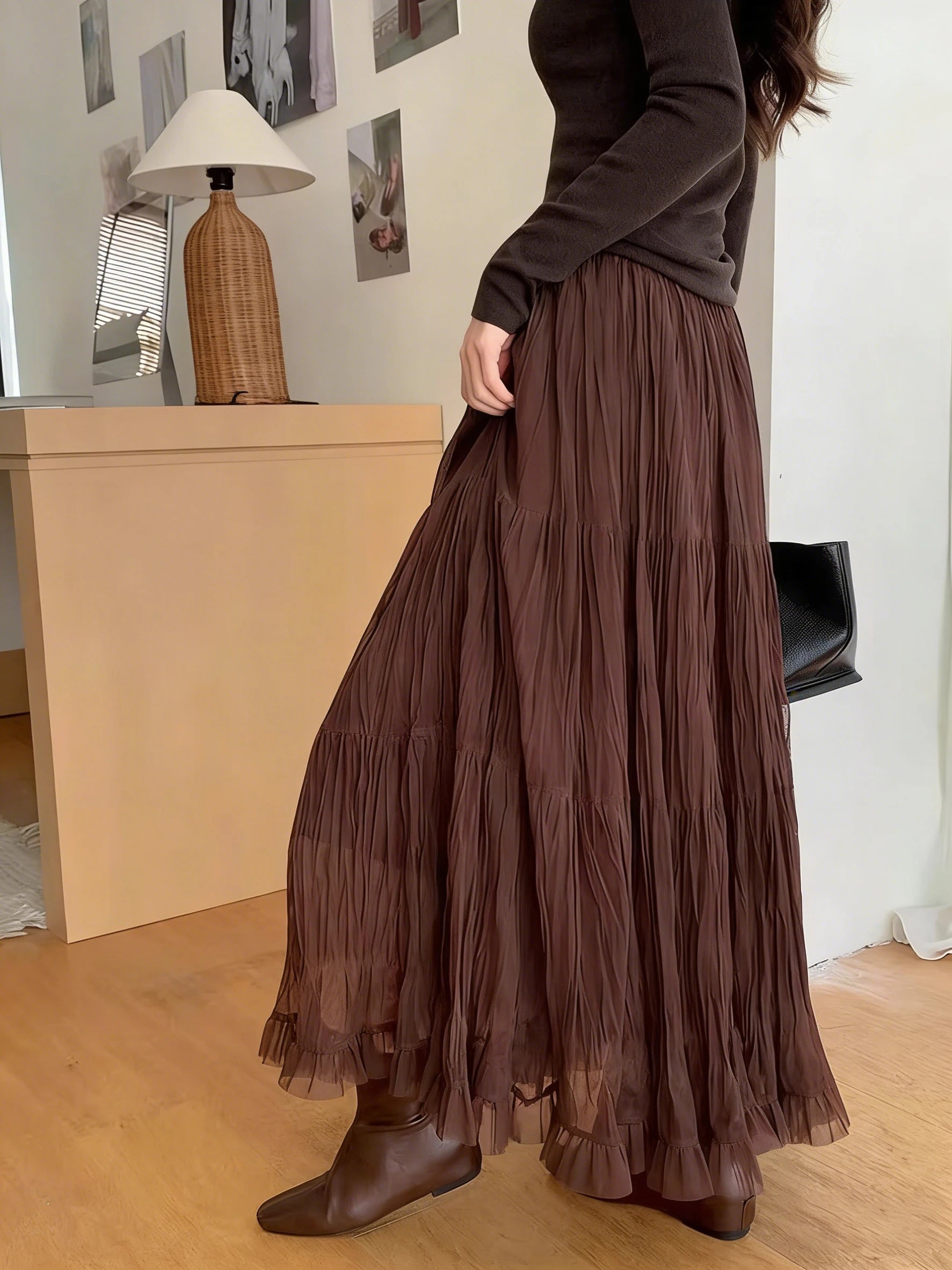 Elegant Pleated Skirt for Women with Elastic Waist Slim Fit A-Line Long Design Spring 2026 Fashion Trend