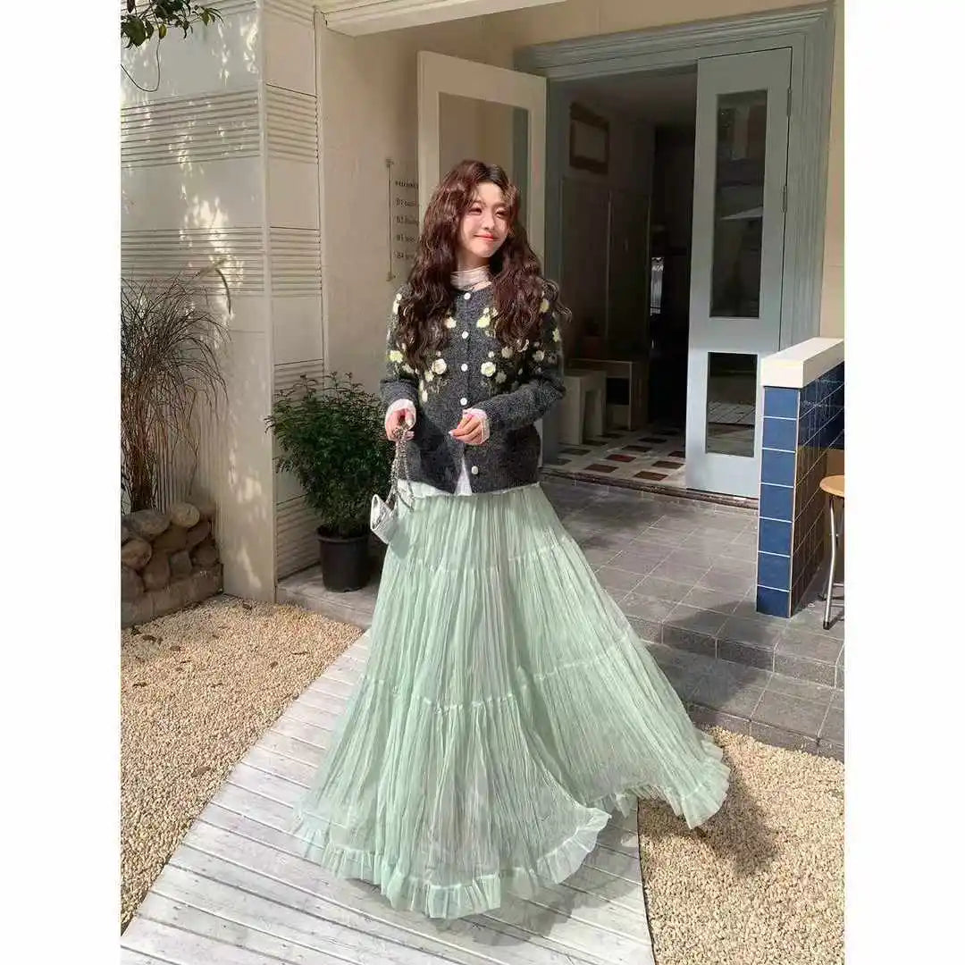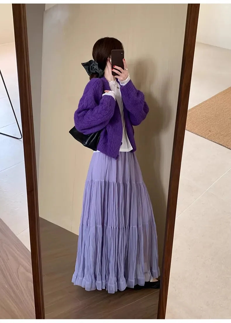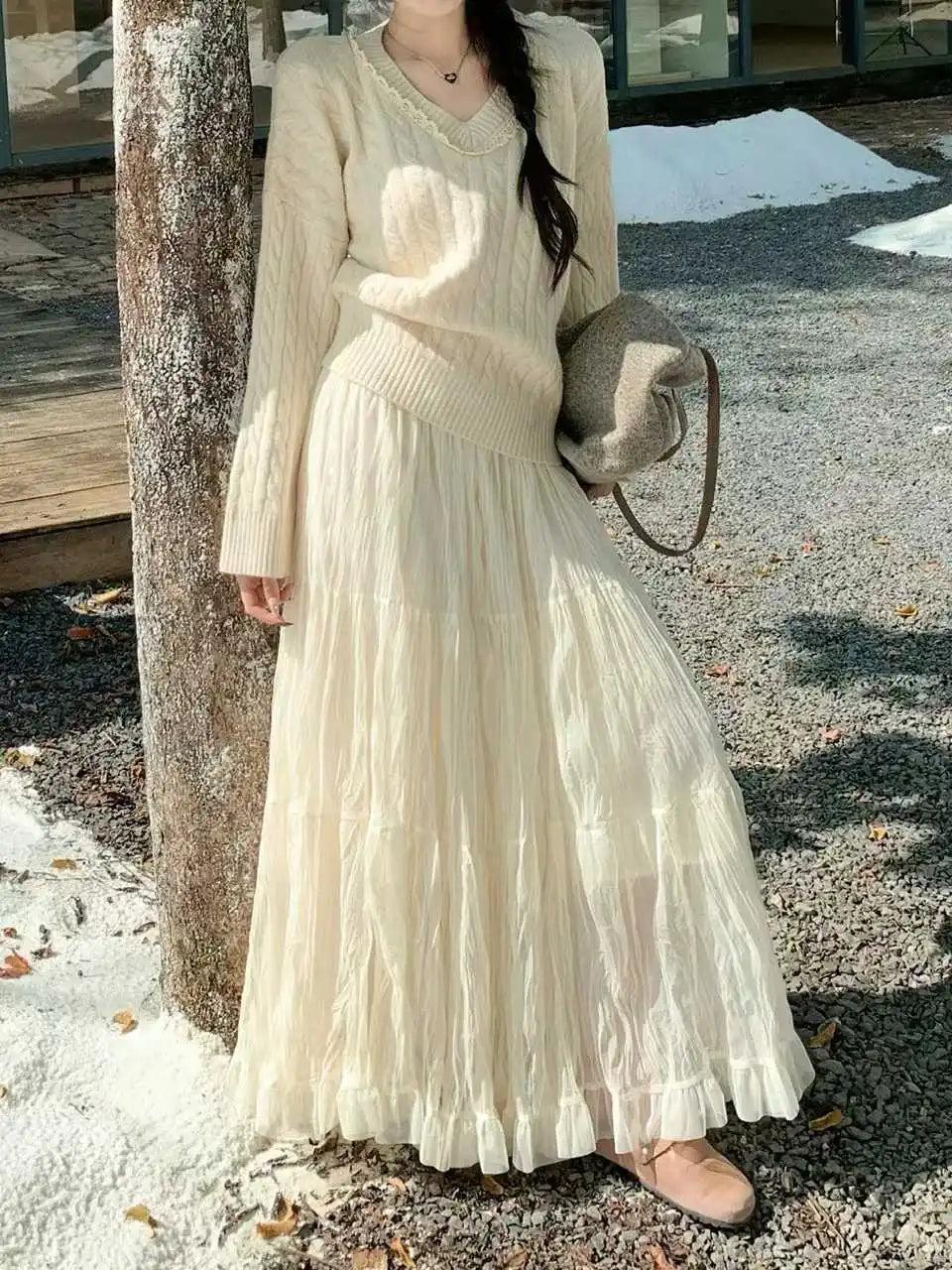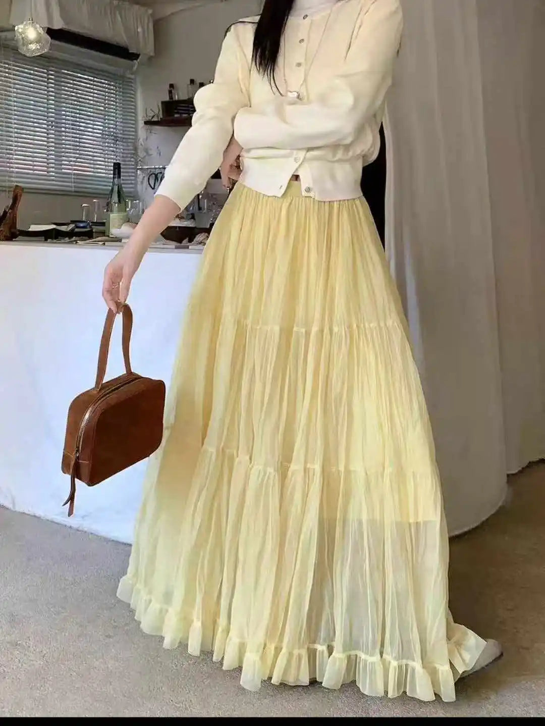 Elegant Pleated Skirt for Women with Elastic Waist Slim Fit A-Line Long Design Spring 2026 Fashion Trend